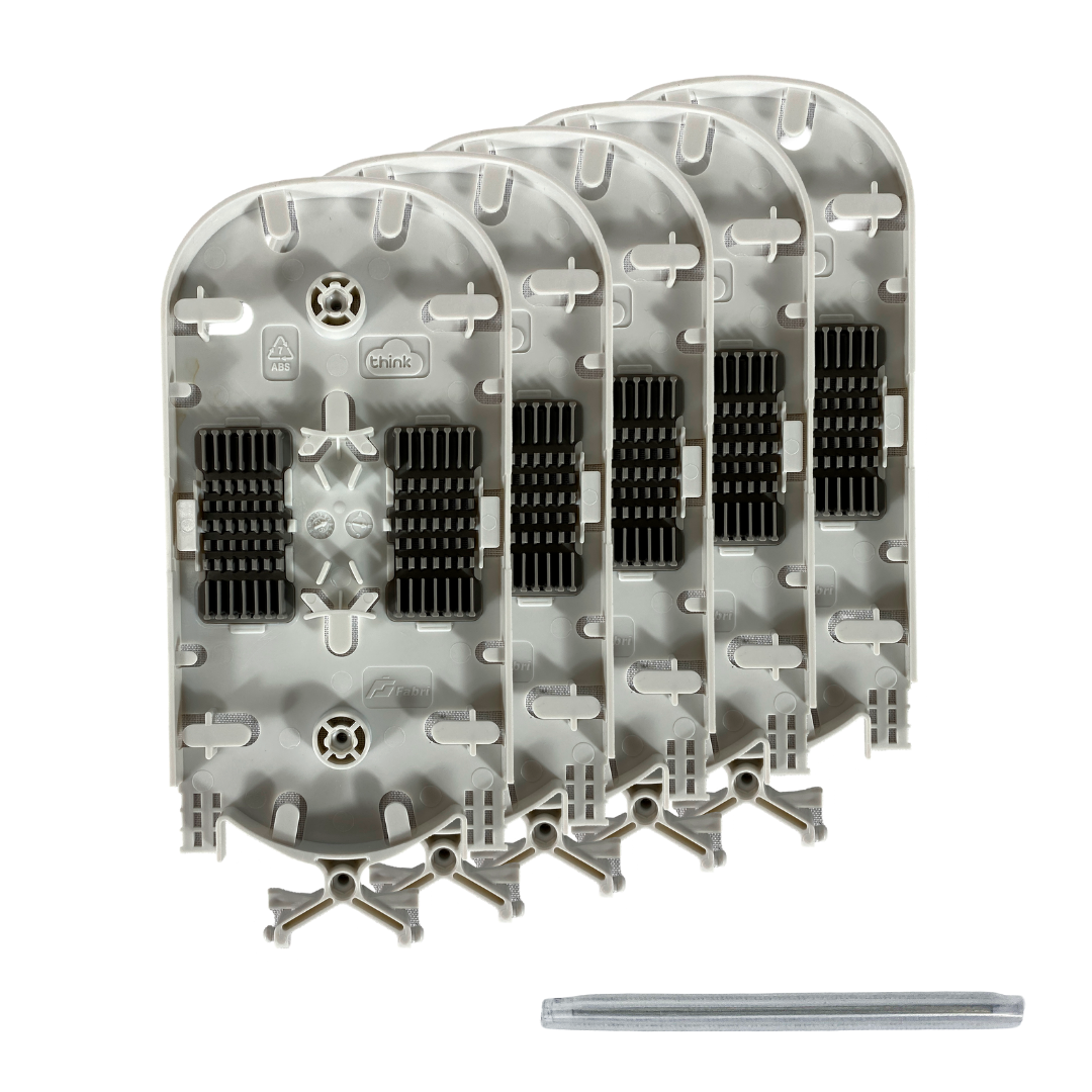 Organização e proteção das fibras fusionadas dentro de caixas de emenda, garantindo curvatura adequada e evitando rompimentos.